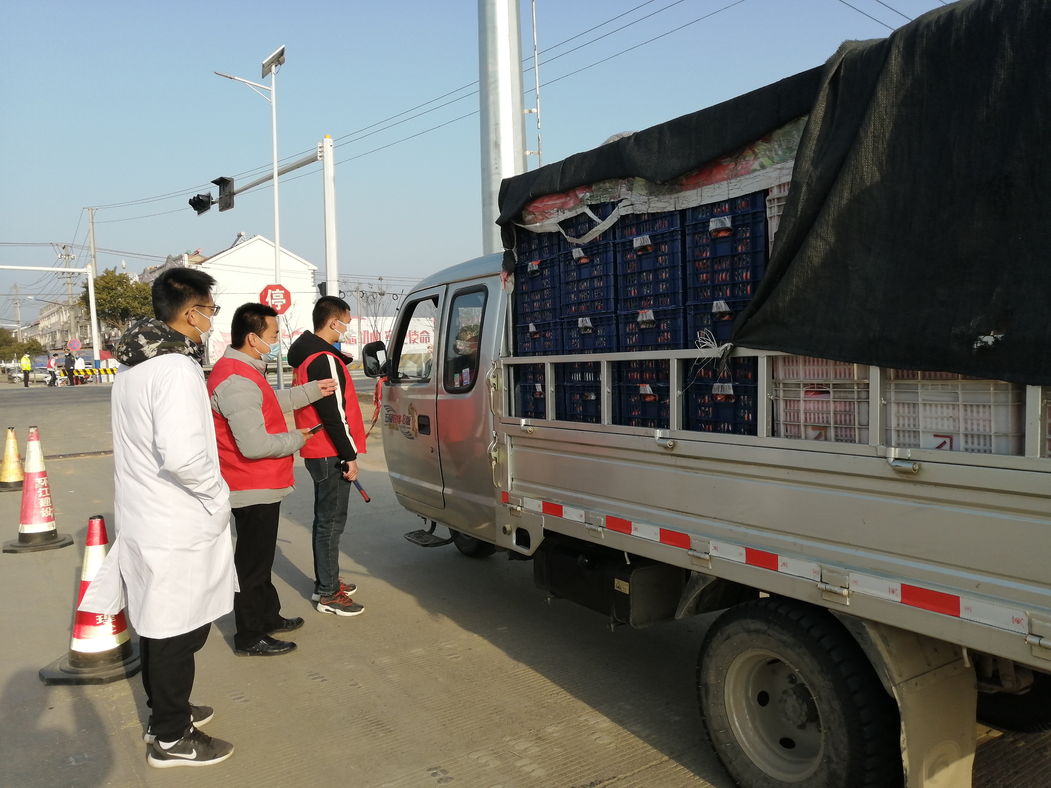 2月23日根據張鋪鎮疫情防控指揮部安排,在205國道出入口設立疫情防控檢查點,對過往車輛特別是天長市外進出的車輛進行疫情防控監測、信息登記。八墩村志愿者們時刻保持高度警惕,值班期間在崗在位、履職盡責、克服困難、嚴格把關,全面細致做好防控檢查和登記,同時對沒有出入證的車輛及時進行勸返。(圖為八墩村志愿者和村醫對過往車輛進行檢查、測體溫)