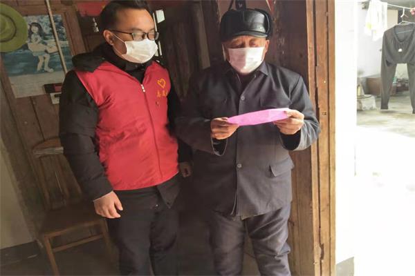 掌鼓村積極開展新型冠狀病毒肺炎防控宣傳工作,全體村干下隊(duì)為農(nóng)戶發(fā)放至廣大市民的一封信,每到一戶都和村民認(rèn)真宣傳。