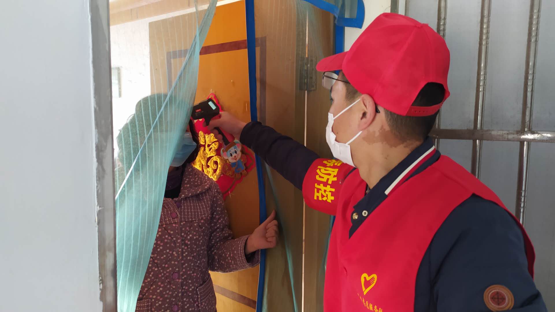 根據上級指示,對于從外地回來居民都要進行十四天隔離,2020年3月1日,社區內一家從外地回來人員隔離期結束,社區工作人員上門進行體溫測量并送其解除隔離通知書。