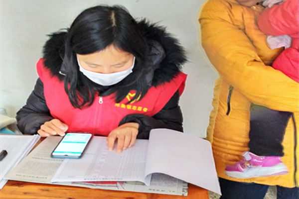 鮑橋村計生衛生工作人員,走訪入戶宣傳為轄區內村民建立電子健康卡