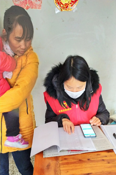 鮑橋村計生衛生工作人員,走訪入戶宣傳為轄區內村民建立電子健康卡