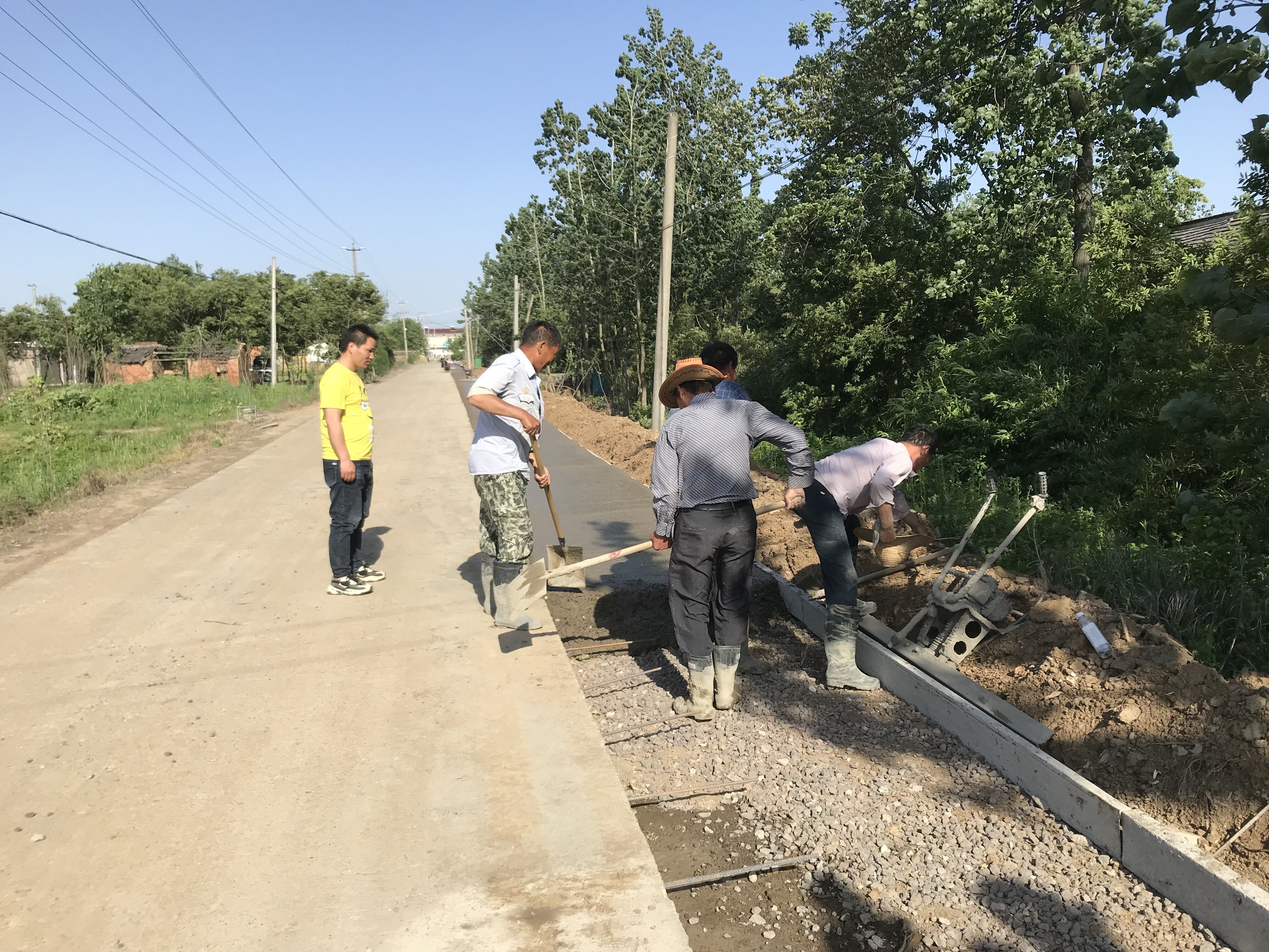 2020年5月18日,村兩委班子成員胡永慶對道路施工情況進行監督和指導,在要求施工人員加快進度的同時,也要保證工程質量,確保村民能及時收割小麥和放水插秧。