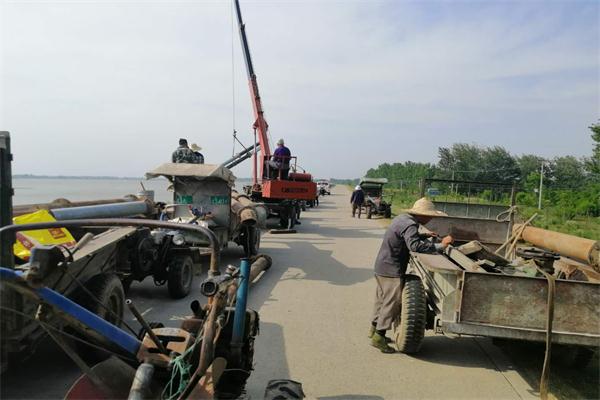 2020年6月7日下午,建華村組織人員在安樂水庫安裝機械準備抗旱提水工作。