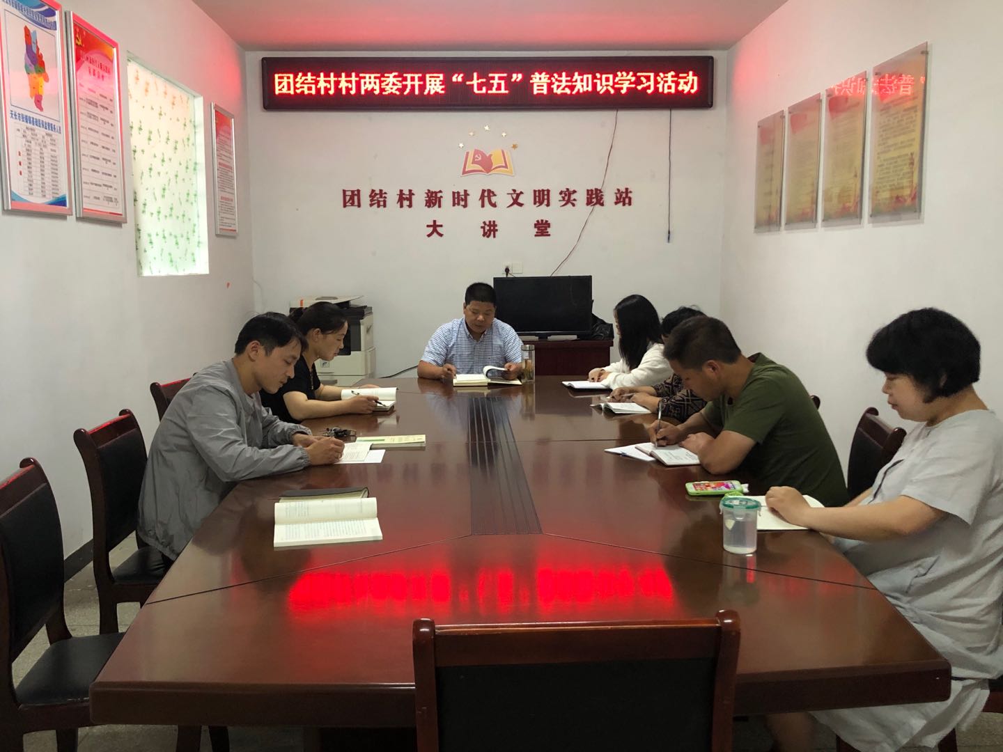 會上,李春山同志帶領全體村干學習了“七五”普法相關知識,并指出全體村干必須深入學習憲法,廣泛傳播法律知識,進一步堅定中國特色社會主義法治建設,提高全體村干的法律意識、法律素質,樹立法治信念,提高團結村法制化管理水平,促進團結村法制化建設,密切聯系實際開展“七五”普法學習工作,制定學習工作規劃。