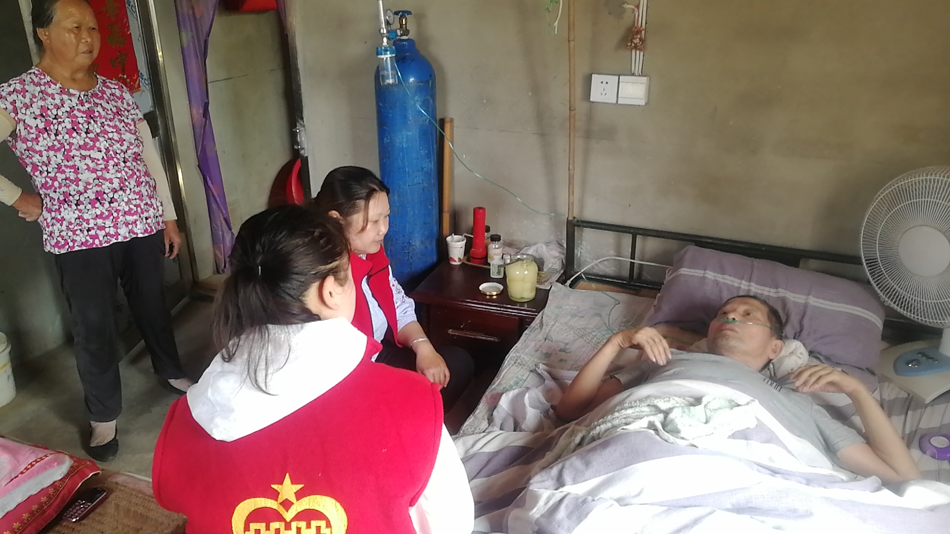 2020年6月2日,雙柳村“夕陽紅”志愿服務(wù)小隊上門看望失能失智退伍老兵胡慶偉。胡慶偉同志,1947年5月11日出生,黨員,因患肺氣腫等疾病已臥床多年,全靠氧氣瓶維持生命,家庭生活貧困,僅靠兒子種幾畝薄田的微薄收入維持家庭生活。