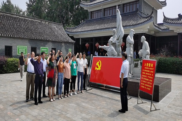 一大早黨員們精神抖擻,佩戴好黨徽,來到抗大八分校門口,正好廣場大屏正在播放紅色電影,大家紛紛駐足觀看良久。年輕的預備黨員、入黨積極分子在村黨總支書記倪玉生的帶領下面向黨旗宣誓,感受濃烈的紅色氛圍,當參觀到地道時,黨員們紛紛走下地道,重走當年革命先烈走過的道路。