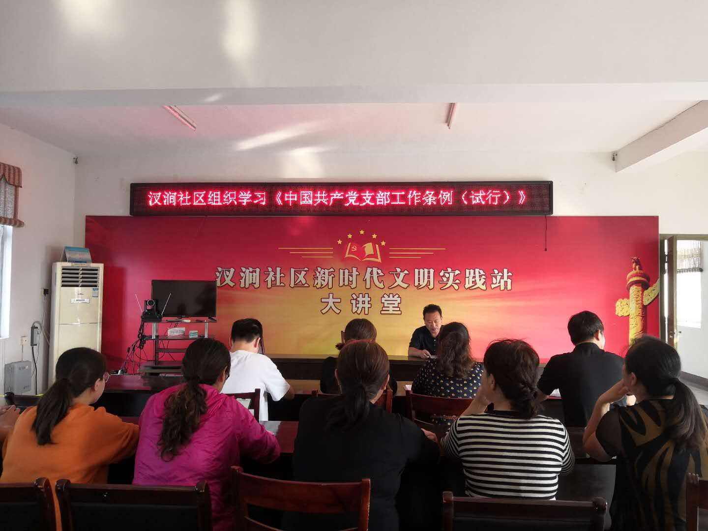 2020年9月25日上午,汊澗社區組織全體村干學習《中國共產黨支部工作條例(試行)》會,會議由黨總支副書記李春林主持,學習結束后,李春林指出深入推行“兩學一做”,進一步明確黨員干部的職責,《中國共產黨支部工作條例(試行)》是以習近平新時代中國特色社會主義思想為指導,這是黨的第一部關于黨支部工作的基礎主干法規,助推了黨支部組織力的提升、政治功能的發揮進一步加強,黨支部工作標準化、規范化建設,有力促進各級領導抓黨的基層組織建設。