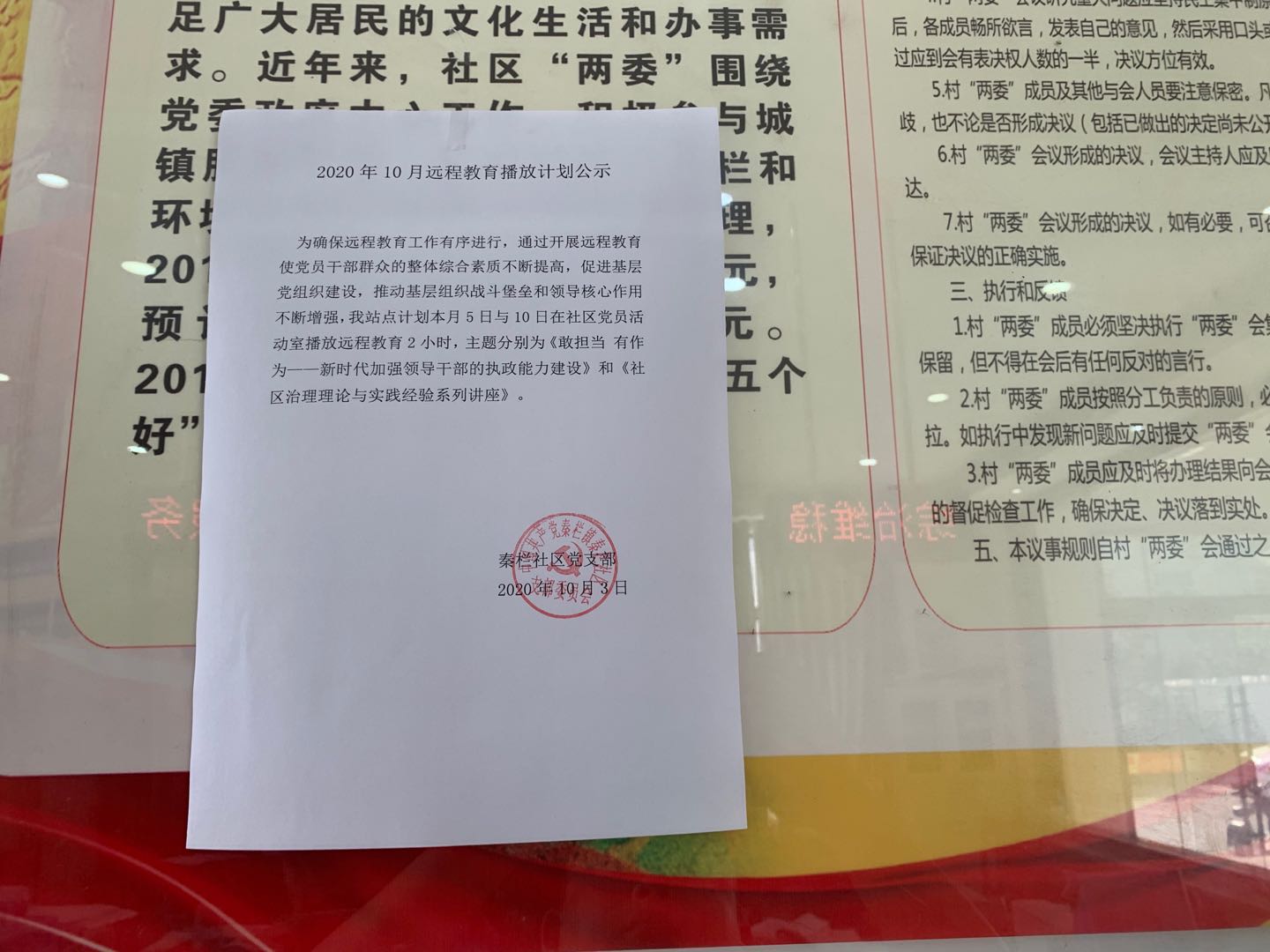 秦欄社區(qū)黨支部2020年10月遠程教育播放計劃