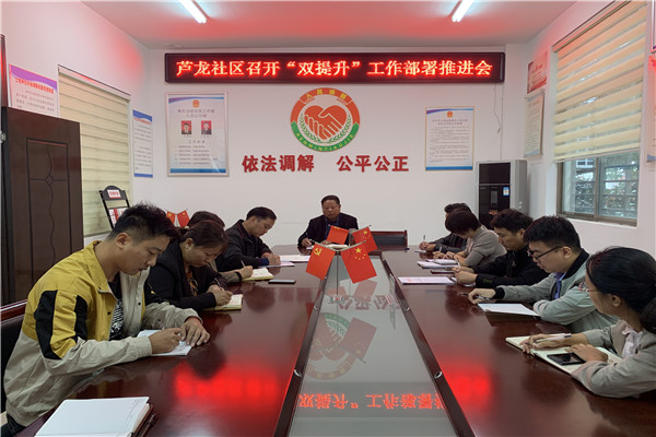 會上,趙主任傳達了 “雙提升”會議精神,對蘆龍社區十月份“雙提升”工作開展情況進行點評以及下一步工作進行安排部署,并對當前群防群治、信訪等重點工作進行了安排。