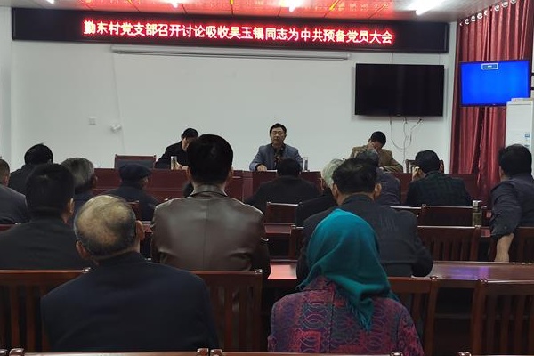 近日,勤東村黨支部召開吸收預備黨員大會。支部共28名黨員參加。
