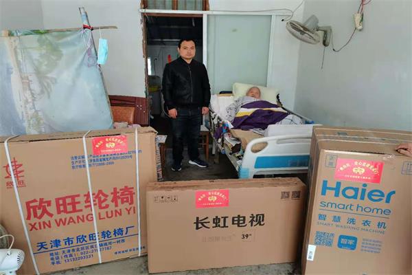 2020年11月6日,銅城鎮(zhèn)退伍軍人事務(wù)站陳主任和村兩委成員為烈士送去洗衣機(jī)、電視劇、輪椅等生活家電用品,與烈士子女長(zhǎng)談,詢問(wèn)烈士子女現(xiàn)在的生活狀況以及身體健康等情況。