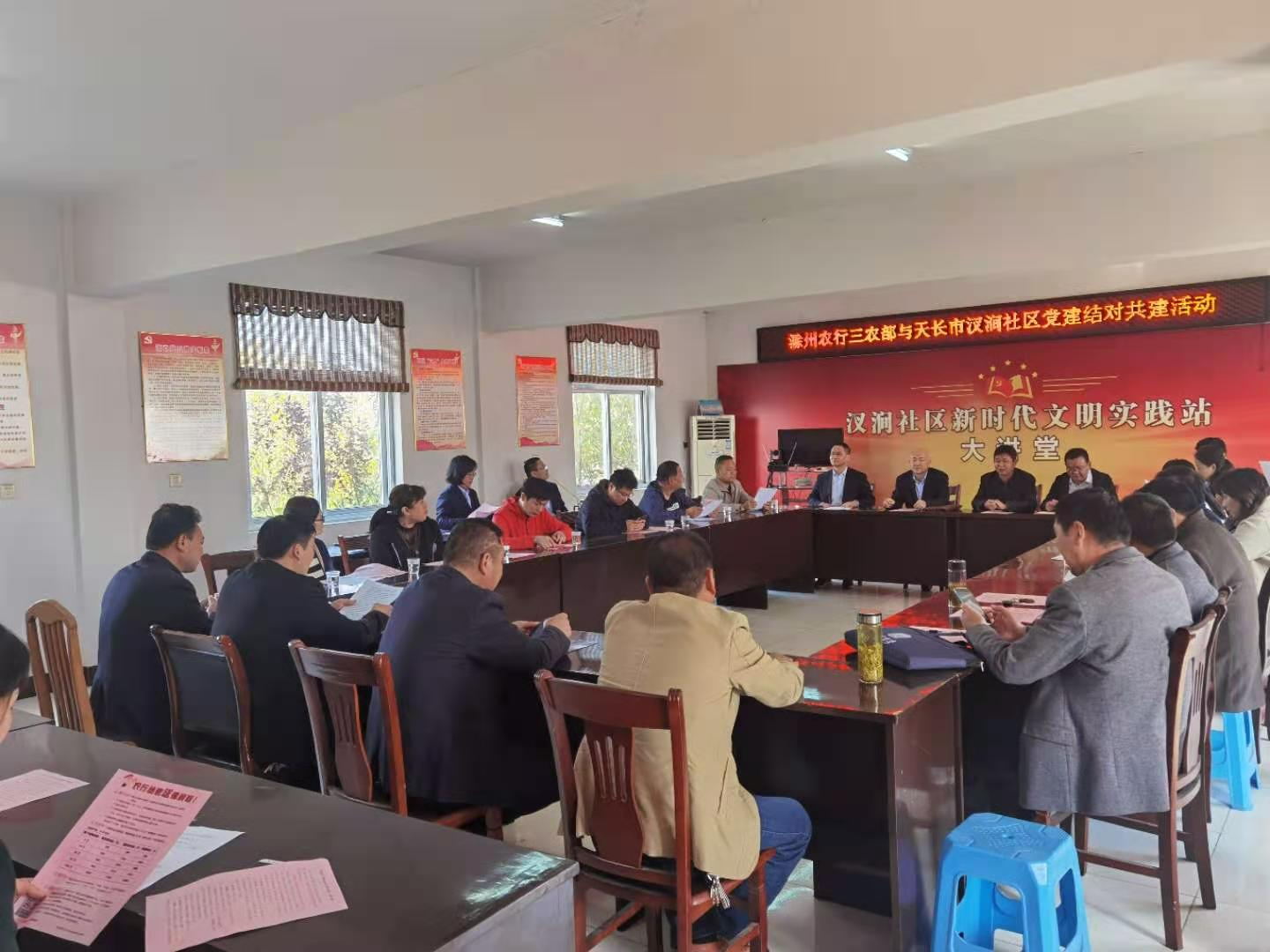 2020年11月13日上午,汊澗社區在二樓會議室召開了滁州農行與汊澗社區黨建結對共建活動,會議由劉冤主持。會議上滁州市農行領導介紹了惠農e貸產品:年齡在18周歲以上,且申請借款時年齡和借款期限之和不超過65年;信用良好;符合農行貸款條件的農戶,系統自動審查審批,純信用方式最高可貸10萬元,30萬元以下貸款,年利率3.55%起,每萬元日付息低至九毛七!隨借隨還!