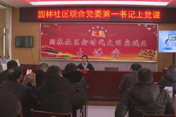 2020年12月25日園林社區組織召開第四季度黨員大會。會議中,市委常委、宣傳部朱部長以園林社區聯合黨委第一書記的身份,通過上黨課的形式,同與會黨員共同學習了黨的十九屆五中全會精神。本次黨課主要從四個方面和黨員們學習《中共中央關于制定國民經濟和社會發展第十四個五年規劃和二〇三五年遠景目標的建議》(下稱《建議》)的精神內涵。