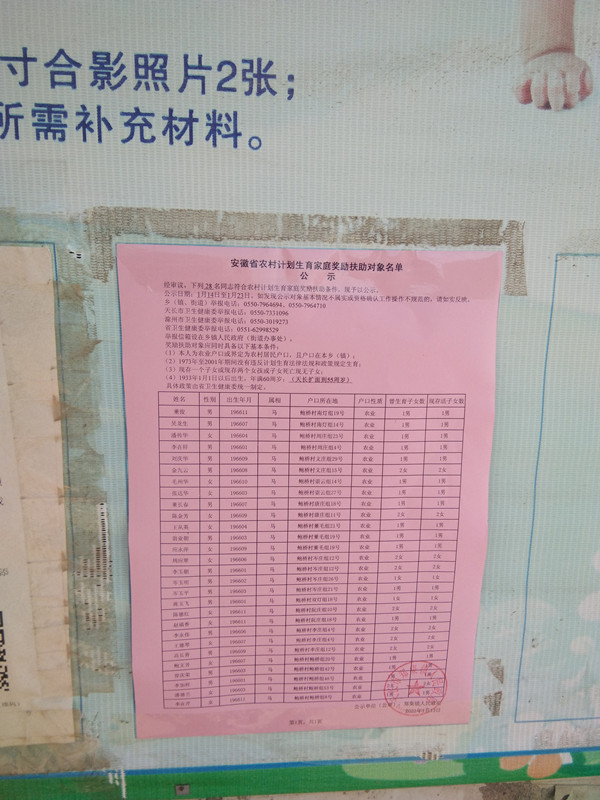 經審議,鮑橋村28名同志符合農村計劃生育家庭獎勵扶助條件,現將名單進行公示。如發現公示對象基本情況不屬實或資格確認工作操作不規范的,請如實反映。