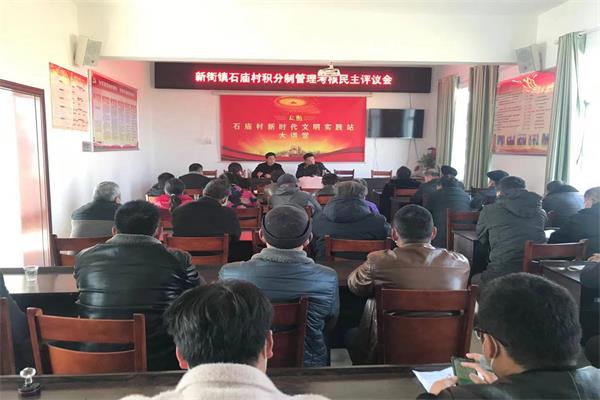 3月10日上午石廟村在村二樓黨員活動室召開2020年度積分制管理考核評議會。會議由石廟村黨支部書記戴書元主持,鎮評議組組長李振龍、成員薛永智及石廟村黨員代表、群眾代表、村民組長代表參與此次會議。會議首先由鎮評議組組長李振龍宣講并傳達了天長市“舉旗幟、送理論”黨的十九屆五中全會精神。接著戴書元同志在大會上作2020年個人述職報告。會議最后由評議組長李振龍宣讀《新街鎮2020年度村干部積分制管理考核工作方案》并對此次考核內容及測評表填寫作了詳細說明。最終參會人員堅持公平、公正、客觀的原則對全體村干逐一打分。