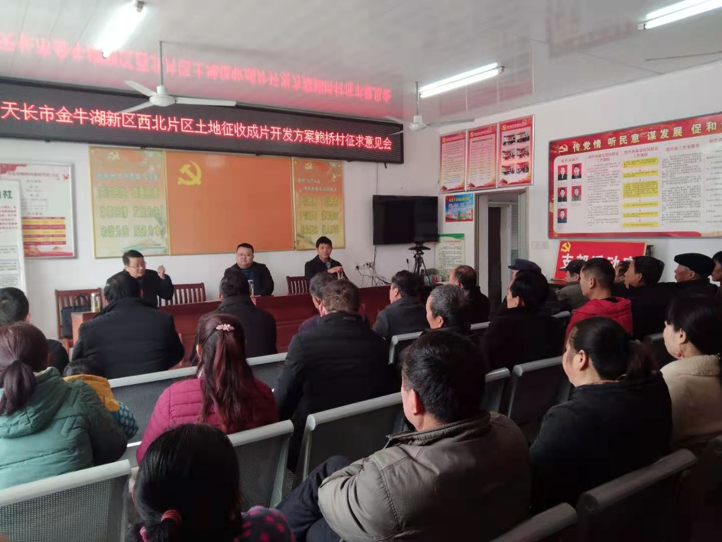 金牛湖新區建設可能會涉及到鮑橋村李莊隊和雙燈隊的部分土地,天長市領導和鄭集鎮領導一起到鮑橋村組織村民代表召開金牛湖新區土地征收成片開發方案征求意見會。