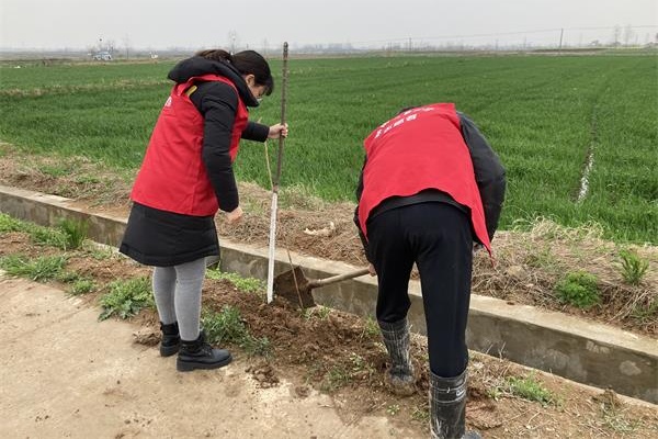 活動現場,志愿者們以兩人一小組的形式,一人扶樹,一人挖坑,各個環節銜接有序,呈現出一幅忙碌有序的勞動景象。經過幾個小時的揮汗奮戰,大家望著筆直整齊的樹木,雖然疲憊不堪,但樂此不疲。