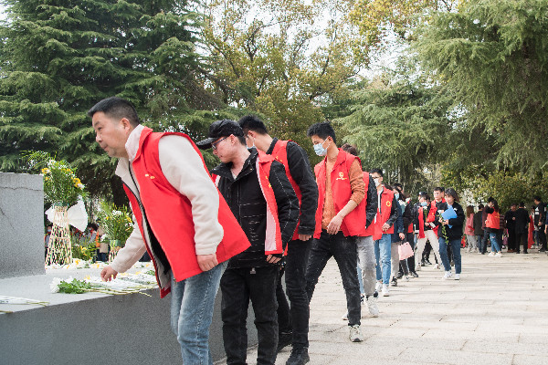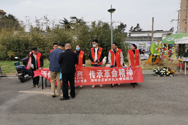 活動(dòng)中,園林社區(qū)聯(lián)合黨委成員和轄區(qū)黨員同志在烈士墓碑前全體肅立,默哀一分鐘;在黨旗下集體宣誓,重溫入黨誓詞;向革命烈士鞠躬、敬獻(xiàn)鮮花,為烈士擦拭墓碑,以此來表達(dá)對先烈的敬仰之情。為進(jìn)一步提高城市文明程度,在全市形成文明祭掃的新風(fēng)尚,園林社區(qū)志愿者還在現(xiàn)場發(fā)放文明祭掃宣傳手冊,呼吁大家科學(xué)、文明開展祭掃活動(dòng)。