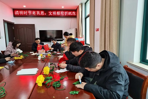 上午8時,聯(lián)合黨委及社區(qū)兩委成員準時來到天一社區(qū)居委會的三樓活動室,親手制作祭祀紙花,為祭掃活動做準備。紙花制作完成后,所有人員來到天長市烈士陵園參加祭掃活動。在烈士紀念碑前,大家手捧紙花,心情格外沉重,肅立默哀向烈士三鞠躬后敬獻花籃和紙花,追思革命烈士的高貴品質(zhì),致敬英雄。廣大黨員重溫入黨誓詞并在革命烈士紀念館內(nèi)瞻仰學習,緬懷先烈。祭掃過后,全體人員在陵園附近發(fā)放《文明祭掃倡議書》,倡導(dǎo)文明祭祀方式,抵制焚燒香燭紙錢等舊俗陋習,讓文明祭奠蔚然成風,讓文明理念深入人心。