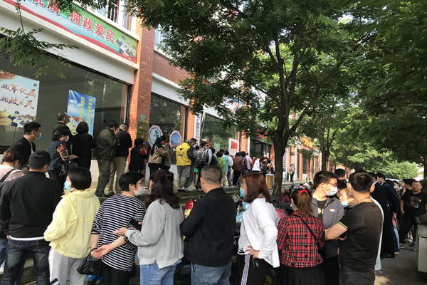 一大早,居民前往潯河社區居委會排隊登記領號后前往市人民醫院進行疫苗接種工作。