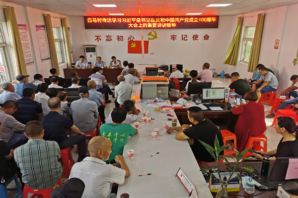 2021年7月1日,白馬村黨總支在村部慶祝中國共產黨成立100周年,全村50余名黨員同志參與,會議由黨總支副書記主持。