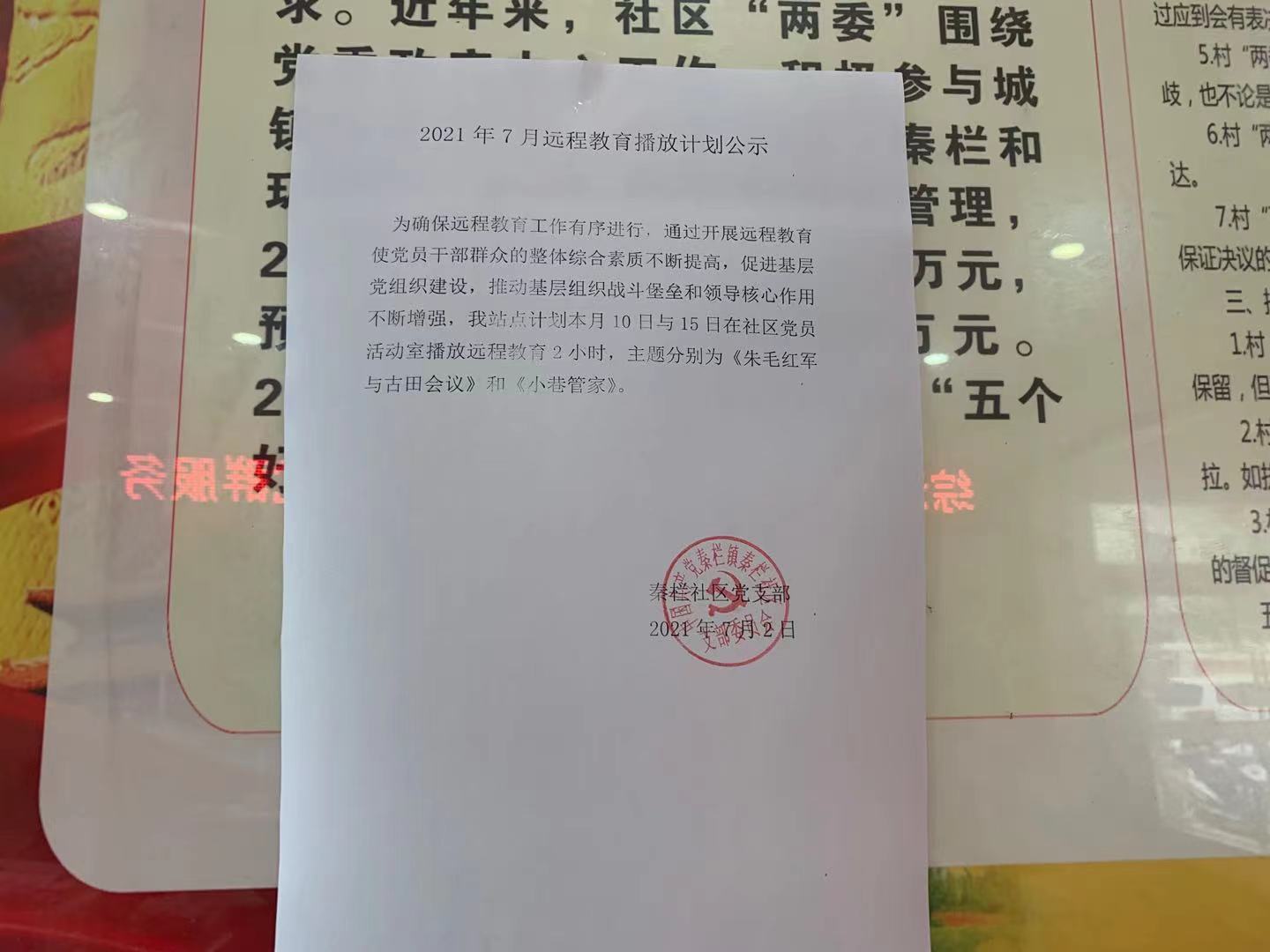 秦欄社區(qū)2021年7月遠(yuǎn)程教育播放計(jì)劃
