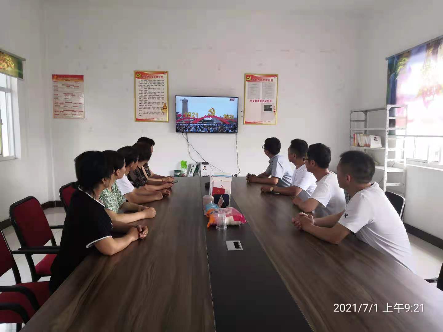 2021年7月1日上午,山海社區組織黨員觀看慶祝中國共產黨成立一百周年大會。