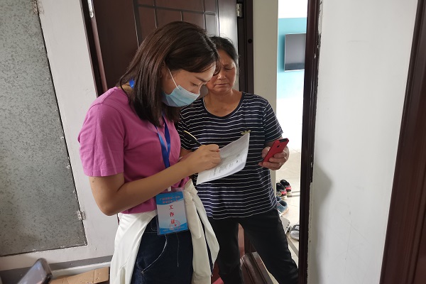 社區工作人員通過“電話+上門+網格群”的形式對轄區內居民、商戶進行地毯式摸排,詳細向居民了解家庭接種情況、未接種原因、南京等中高風險地區返天人員信息,引導居民群眾盡快接種新冠疫苗,主動報備中高風險地區返天人員信息,號召廣大居民以科學健康的心態對應新冠疫情。