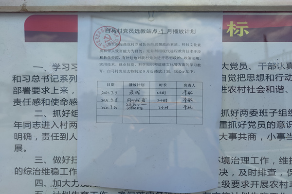 為全面提高我村黨員隊伍的思想政治素質、科技文化素質和帶頭致富能力為目的,充分利用現代遠程教育技術手段和教學資源,有計劃地對我村黨員進行思想政治、政策法規、實用技術、就業技能、科學知識和道德文化等方面的學習教育。白馬村黨總支特制定9月份播放計劃: