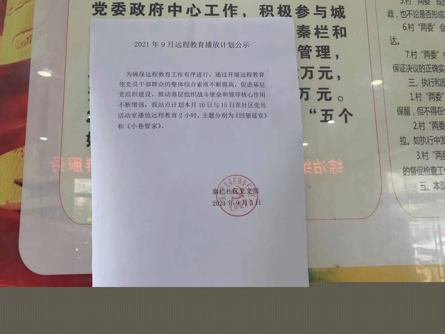 秦欄社區(qū)2021年9月遠(yuǎn)程教育播放計(jì)劃