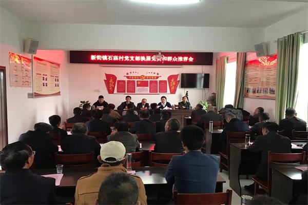 會議第一項由石廟村黨支部書記戴書元進行述職并對黨組織領導班子及成員進行民主測評;會議第二項由鎮指導組成員朱國民同志宣讀村“兩委”換屆紀律提醒卡;會議第三項由孫小敏同志對候選人條件和職數配備作說明;會議第四項推薦下一屆石廟村黨組織委員、書記候選人初步人選并通報選舉結果報鎮組織部。