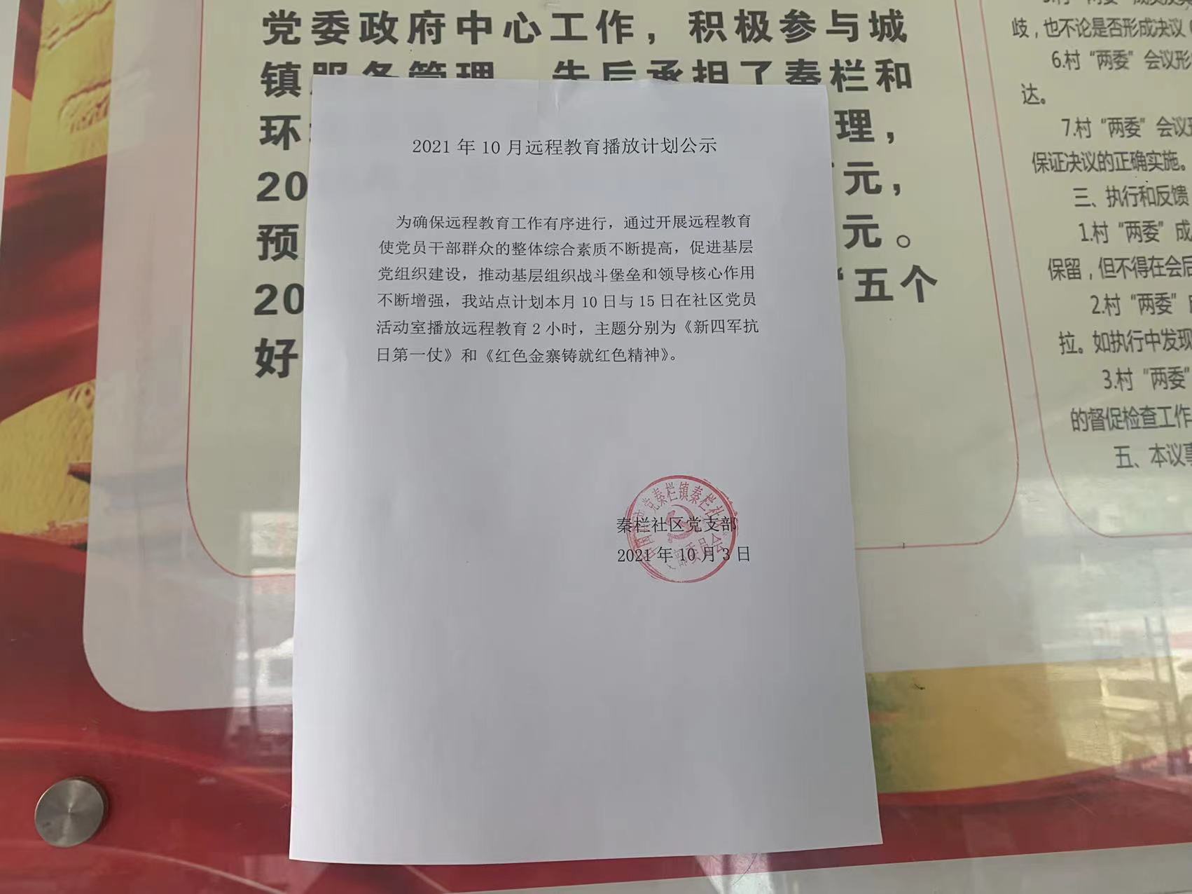 秦欄社區2021年10月遠程教育播放計劃