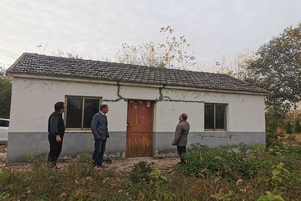 10月28號,吳莊村村干與施工方一同到低保戶唐加山家現(xiàn)場查看房屋需修繕的地方。