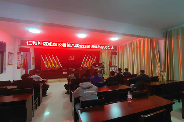 為了進一步營造向模范學習、向模范致敬、向模范看齊的濃厚氛圍,11月29日,仁和社區組織社區工作人員、黨員代表、群眾代表集中觀看了中央電視臺一套八點直播的《圓夢中國德耀中華——第八屆全國道德模范頒獎儀式》,節目通過播放短片、現場訪談,頒發獎章,致敬禮贊,文藝表演等環節,生動展示了道德模范的感人事跡,大力弘揚了道德模范的崇高精神,向全社會傳遞崇德向善、見賢思齊的鮮明價值追求。