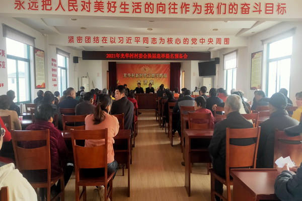 2021年11月18日,光華村召開村民委員會換屆選舉提名預備會。楊村鎮組織部部長董正超同志、楊村鎮文化站站長丁楠同志出席本次會議。會議由光華村選舉委員會主任朱玉林同志主持。會議主要有以下幾個議程:
