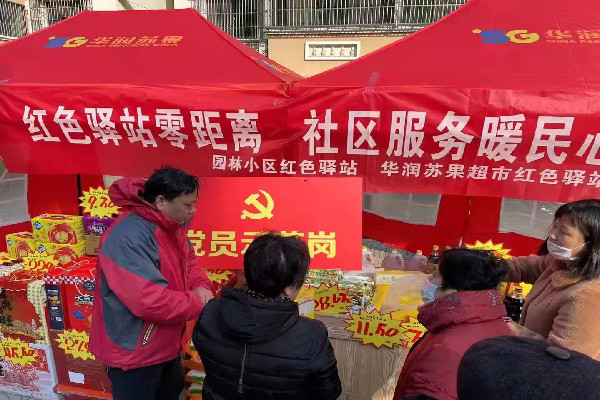 為了方便居民生活,打通服務居民、直面群眾的“最后一公里”。近日,千秋街道園林社區黨總支、園林小區紅色驛站、華潤蘇果超市有限公司攜手開展聯創“紅色驛站”工作。華潤蘇果發揮自身優勢,開展“超市進小區”活動,為園林小區居民提供惠民商品,并為行動不便的居民提供送貨上門服務。居民紛紛表示現在社區服務越來越好了,在家門口就能體驗到逛街購物的感覺,真是讓我們的生活越來越便捷了。”