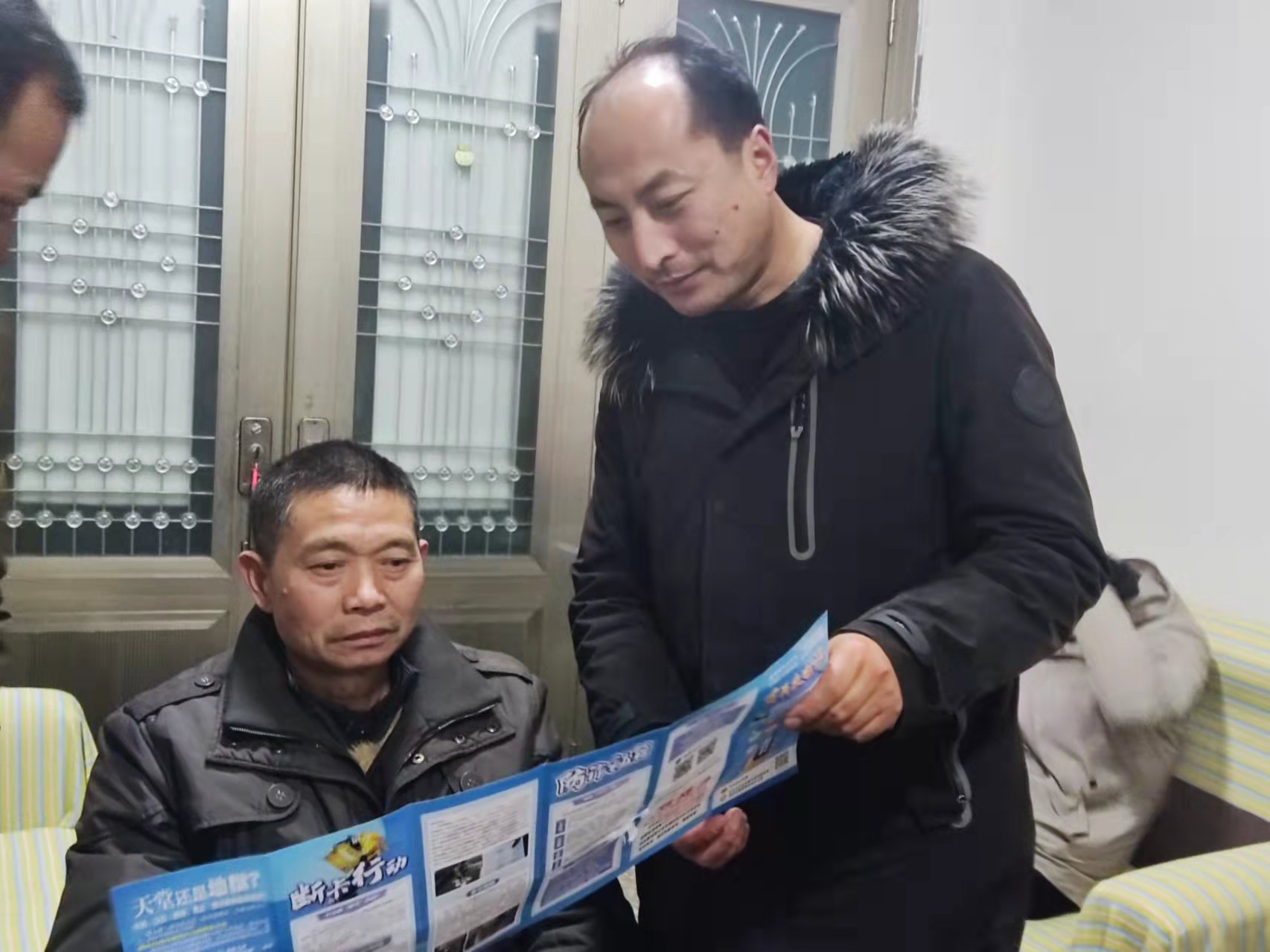 1月27日上午,草洲村開展節前反電詐入戶宣傳活動,綜治專干、一村一輔警和其他村兩委同志走到各自包保村民組,向村民開展反電詐知識宣傳。本次宣傳的內容主要是電信詐騙的慣用手法和伎倆,告訴村民如何識別騙子的行騙招數,并指導他們下載安裝國家反詐中心APP,完成實名認證并打開來電預警的功能。