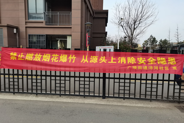 為進一步加強禁止燃放煙花爆竹宣傳工作,保障人民群眾生命財產安全,減少城市環境污染,規范城市管理,廣陵街道潯河社區按照上級禁止燃放煙花爆竹工作相關要求,結合轄區實際情況,在春節期間全面開展了禁止燃放煙花爆竹的宣傳活動。