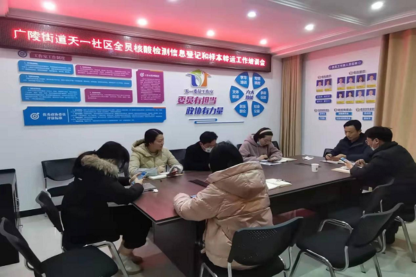 這次培訓會由社區黨支部書記唐來平主持,主要圍繞“美好滁州”核酸預登記系統展開,從人員采樣、樣品登記等具體軟件操作進行培訓,并通過視頻學習及現場演示的形式,向大家闡明了全員核酸檢測工作的人員的組織發動、現場布置及物資準備等方面內容,同時也強調了工作中需要注意的事項及必要的防護措施,為開展全員核酸檢測工作打下了堅實的基礎。