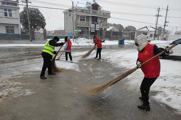 2月7日,由于昨夜突降大雪,影響群眾通行安全。一大早長安村黨總支組織黨員干部志愿者,開展清理村部周邊積雪志愿服務。