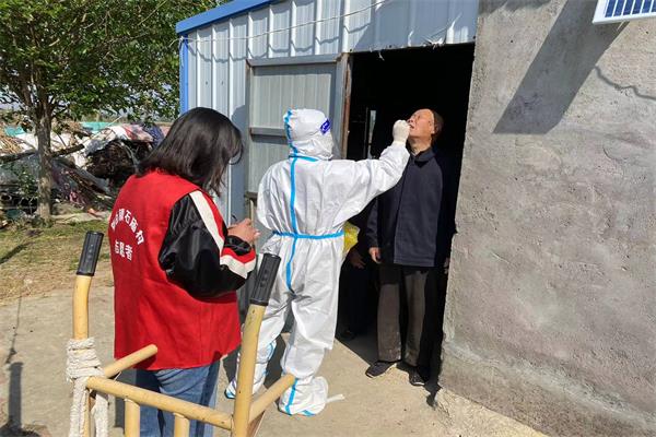 疫情就是命令,防控就是責任,為確保核酸采樣工作全覆蓋,石廟村全面梳理轄區需要上門人員信息,全體工作人員通過電話聯絡、微信群聯系、敲門行動等方式,摸排轄區不能到核酸采集點的人員情況,對行動不便老人、殘疾人及孕婦提供上門采樣服務, 服務中,核酸采樣隊人員在亮明身份,與村民充分溝通后,對他們身體健康狀況進行詢問并妥善完成了掃碼信息登記、采樣、消毒、清理醫療垃圾等每一個采樣環節。采樣完成后,工作人員還不忘叮囑該戶村民做好個人防護、非必要不外出。“核酸檢測采樣工作要做到‘應檢盡檢’,不落一人。此次進行上門采樣服務,開啟人性化溫情服務,打通核酸檢測采樣“最后一公里”,筑牢新冠肺炎疫情防控“安全性”。