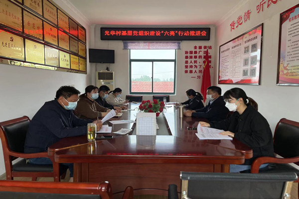 2022年5月12日,光華村開展基層黨組織建設“六亮”行動推進會,鎮領導卜璐同志、丁楠同志參加本次會議。本次會議的主要內容是開展亮黨旗黨徽、亮黨的陣地、亮黨的聲音、亮黨的活動、亮黨的榮譽、亮黨建品牌“六亮”行動實施方案。