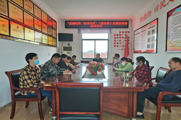 2022年5月20日,光華村開展”點亮村居、振興鄉村“民法典主題宣講會。楊村鎮法律事務所陳樹連同志在現場給百姓們普及工商意外險、與企業簽訂合同的注意事項,以及舉了很多工商意外險的實例。也耐心地向百姓解釋著他們的疑問。