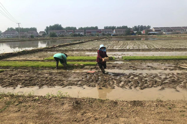 “半畝方塘一片開 天光云影共徘徊”,行走在一條平實規整的機耕路上,涌入眼簾的就是這樣的景象,然而這并不是什么方塘,而是連畝成片的楊村鎮橋南村高標準農田,楊村鎮村黨組織以黨建為引領,扛起糧食安全責任,引導農民翻耕整地,積極開展中稻播種,做到應種盡種,助力夏季糧食生產。這一方平整如棋盤的田地里而今已插滿了青苗,承載著農民秋收的希望,一條條新修的襯砌溝渠如導管一樣縱橫貫穿在田畝之間,向這些嗷嗷待哺的青苗輸送著營養液——灌溉用水,溝渠之間涵閘星羅棋布,有序啟閉,精細地控制著每一塊農田的灌溉水量。循著溝渠水流往上走,便看到一座座新建的泵站,作為農田水利灌溉工程的“心臟”,如今它們跳動得愈發有力。