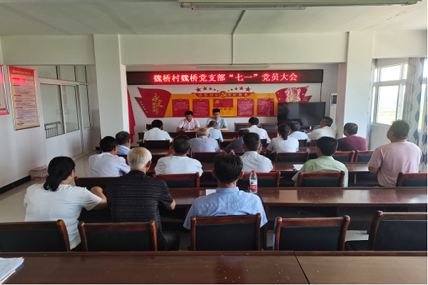 6月29日,魏橋村魏橋黨支部召開“七一”黨員大會,支部書記吳大山主持,包村鎮干部金廣春以及全體支部黨員參會。