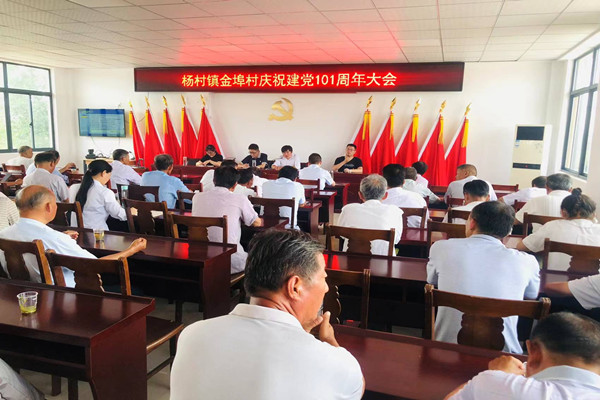 2022年7月1日上午8時,金埠村在新落成的大樓黨員活動中心內召開了,慶祝中國共產黨成立101周年黨員大會。會議由楊村鎮黨委王愛劍同志主持,會議共分6項:一、由金埠村趙森勇同志帶領新入黨的黨員重溫入黨誓詞;二、由金埠村趙森勇同志帶領與會黨員共同學習中央1號文件精神;三、由楊村鎮黨委王愛劍同志上黨課;四、由金埠村趙森勇同志作黨總支工作半年總結;五、由金埠村趙森勇同志安排當前黨建工作;六、由楊村鎮黨委王愛劍同志作會議總結。