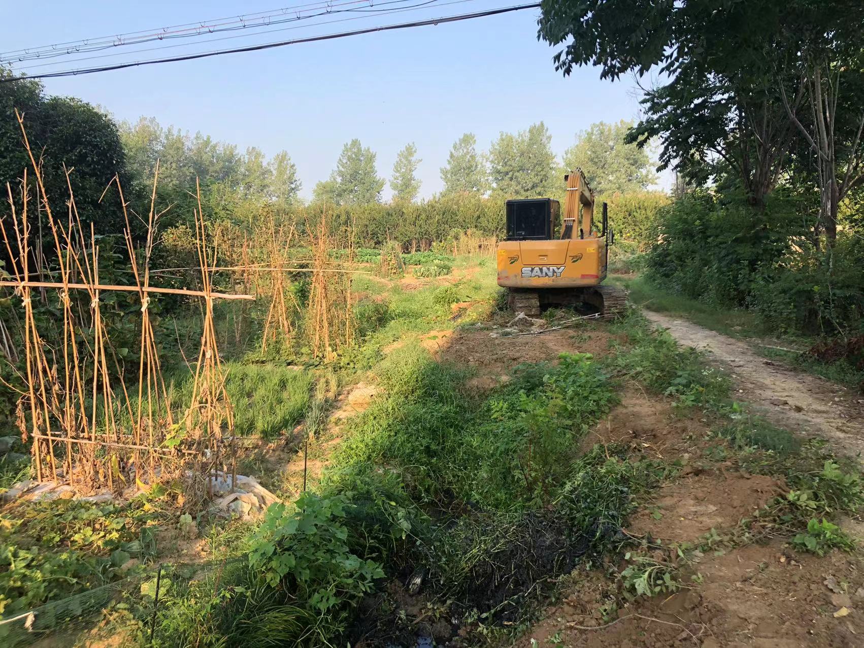 因天氣干旱,人居集中點池塘干涸見底是整治黑臭水體的最佳時機,團結(jié)村調(diào)用挖掘機和渣土車對居民集中點池塘進行黑臭水體進行改造,通過對池塘內(nèi)部清淤、加深,再對池塘周圍進行平整,埋下2根110mmPVC臨時下水管,三節(jié)400*45*4000MM水泥管,便于池塘排水。