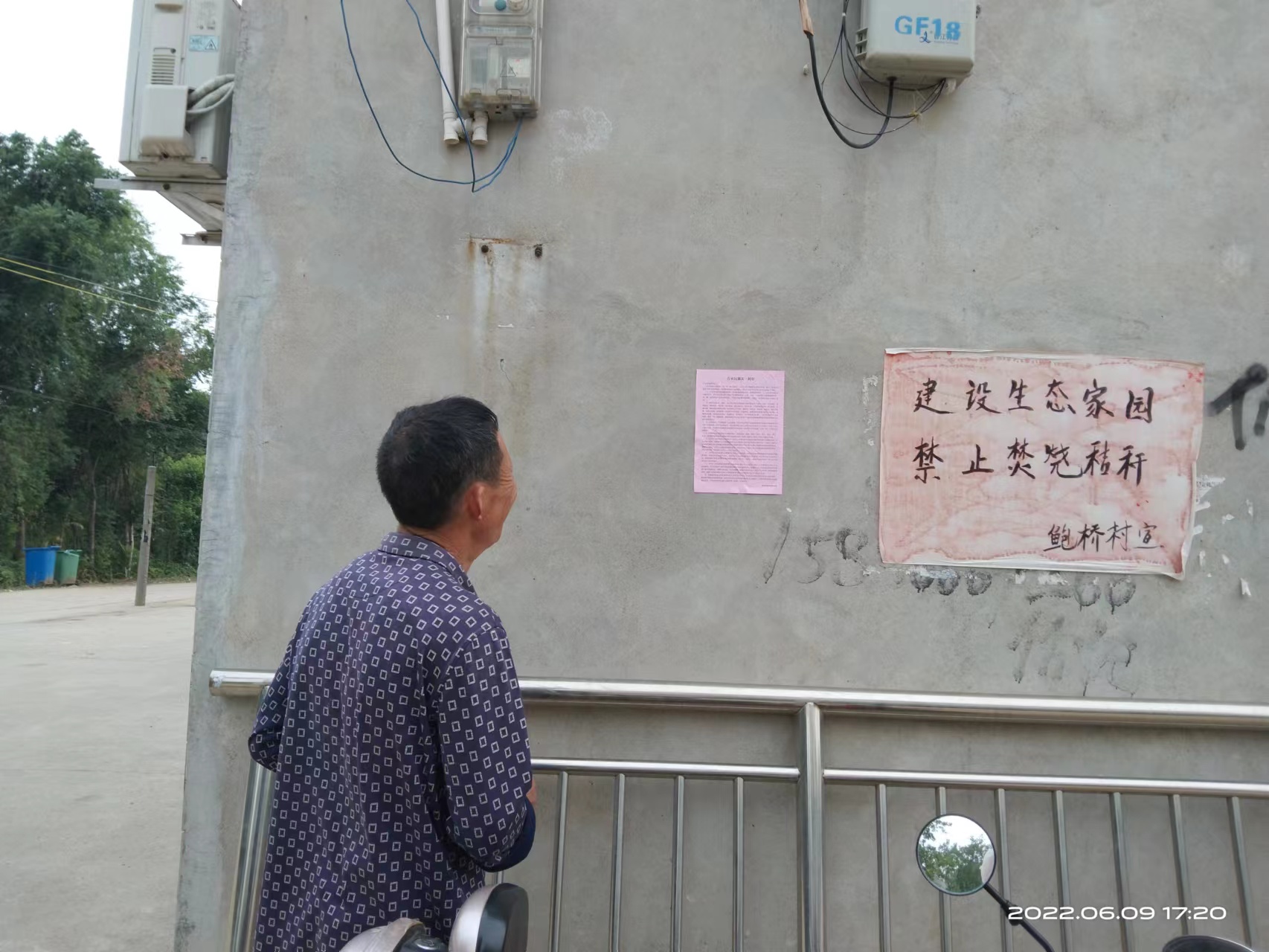 鮑橋村每個隊組都張貼《告農民朋友一封信》,目前我省已構建省、市、縣、鎮(街道)、村(社區)五級田長制責任體系,告知農民朋友農業生產和生活過程中應知曉的事項。