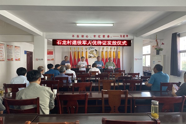 按照全省統一部署,石龍村第一時間發布優待證申領信息,經過對全體退役軍人及重點優撫對象建檔立卡和優待證申請工作有序推進,在中國抗日戰爭勝利77周年紀念日暨世界反法西斯戰爭勝利紀念日,石龍村舉辦退役軍人及其他優撫對象優待證集中發放儀式,有著特殊的意義,我們致敬那群拋頭顱、灑熱血的人民英雄;致敬那場永不妥協的抗爭;致敬今日在風雨中昂首向前的中國。更提醒我們勿忘歷史,珍愛和平!振興中華,吾輩自強!