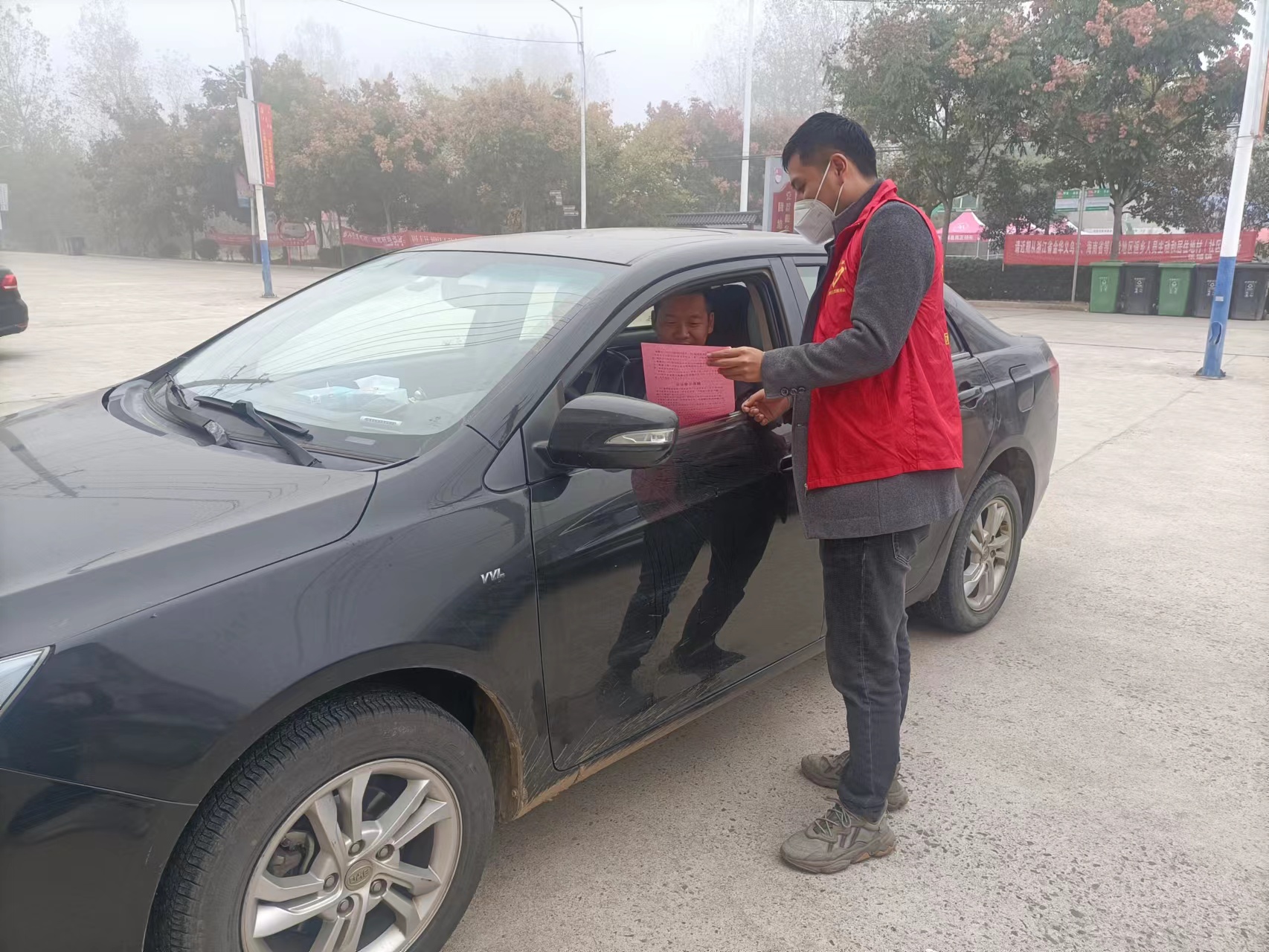 根據(jù)霧霾天氣導致視距縮短的特點,在霧情嚴重的路段,及時安排志愿者加強宣傳,通過發(fā)放宣傳單、喇叭喊話、鳴警報器、閃警示燈警示等方式提示駕駛?cè)舜箪F天氣注意控制車速、車距。進一步提高村民的交通安全意識,提高自我防范能力,減少意外傷害事故發(fā)生。